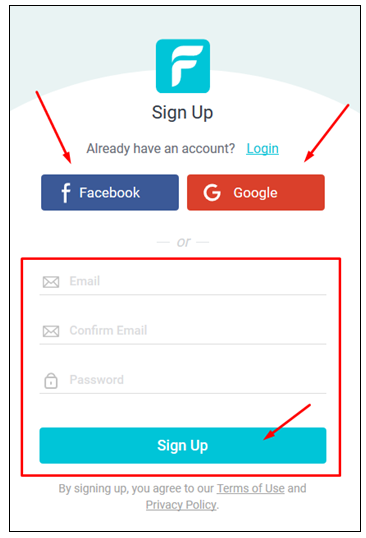 Crie sua conta através do Facebook, Google ou pelo seu e-mail.