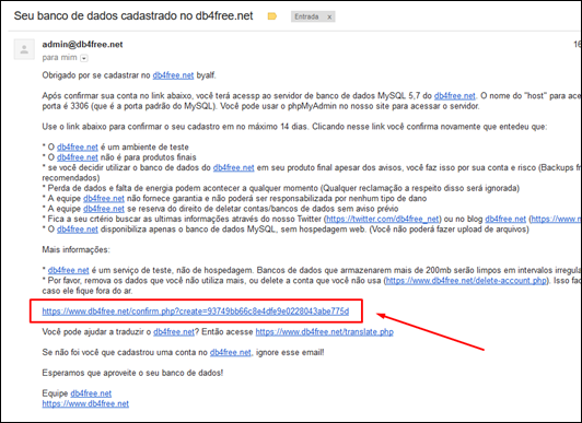 Atenção: db4free.net é um serviço de testes o que significa que não é feito para produtos finais. Podem haver quedas de energia, perda de dados e não haverá funcionalidades de segurança esperadas em serviços de hospedagem. Se você precisa de um servidor MySQL para produto final, não use o db4free.net!